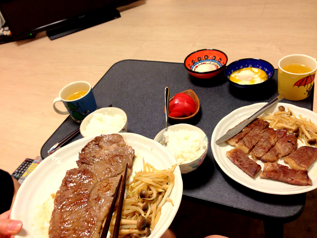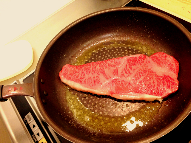 結婚初夜はいい肉食おうってことで霜降りサーロイン。。。